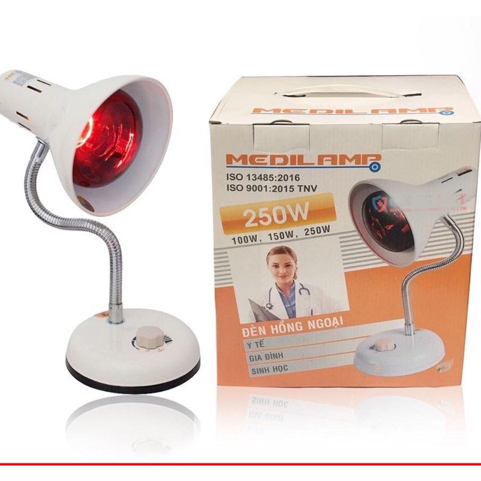 .Thông số kỹ thuật của đèn hồng ngoại:. .Chiều cao tối đa: 40cm.Sử dụng nguồn điện: 220-240V - 50Hz.Công suất: 0 - 250W.Có núm điều chỉnh tăng giảm cường độ tùy theo loại bệnh
