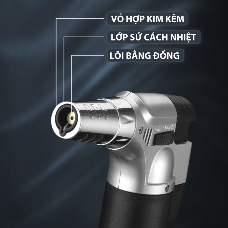 - Đầu khò bằng đồng, bọc bởi sứ chịu nhiệt, vỏ bên ngoài bằng kẽm, thân làm bằng nhựa chịu nhiệt.