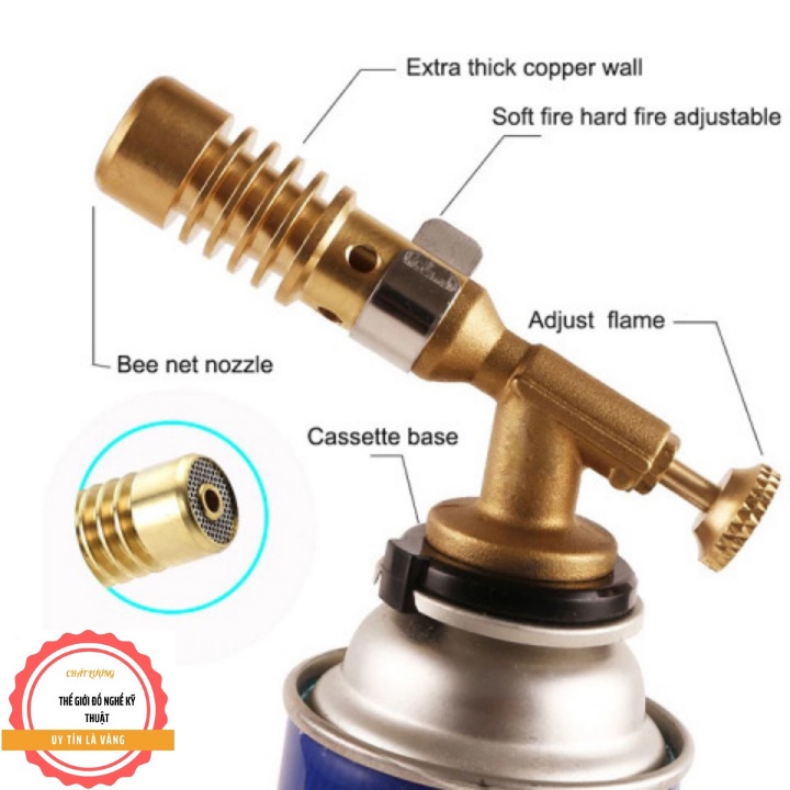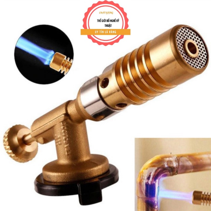 _ Công dụng: hàn nối ống đồng trong ngành cơ điện lạnh hoặc các mối hàn kim loại mềm trong cơ khí, nhóm than nhóm lửa nấu nướng, làm sạch lông gia súc gia cầm, làm bong tróc các mảnh sơn..._ Chất liệu: đồng nguyên khối (trừ phần đế lắp vào bình gas bằng nhựa), lòng phủ lớp chịu nhiệt 1300 độ, độ bền cực cao, không lo bể vỡ hoặc đứt gãy