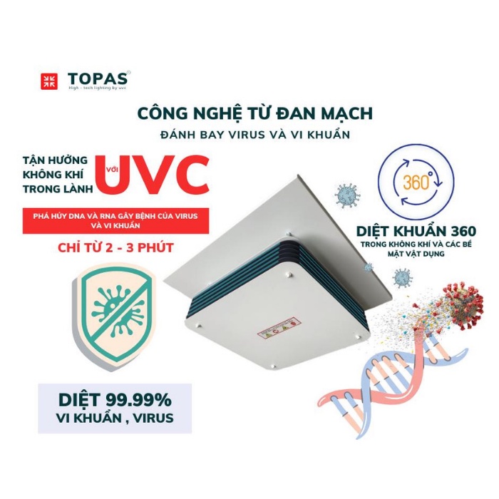 Giới thiệu Đèn Khử Khuẩn Không Khí Treo Trần Điều Khiển Từ Xa TOPAS TP600/600 - Upper AIR/UV