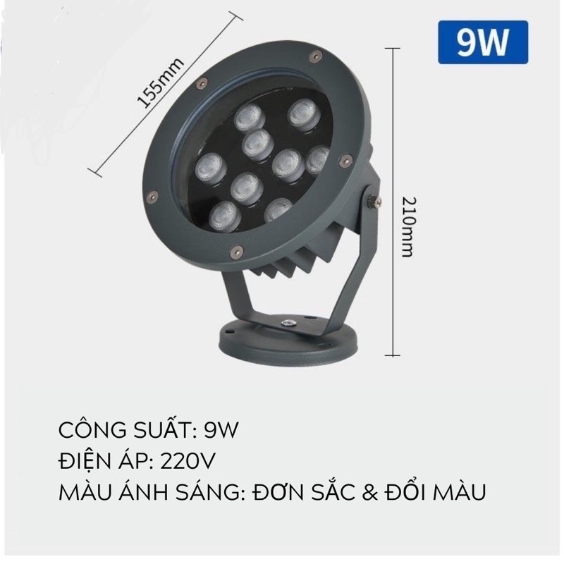 Đèn LED cắm cỏ sân vườn 9W chuyên dùng trang trí chiếu cây cảnh, tiểu cảnh ngoài trời【THÔNG SỐ KỸ THUẬT 】