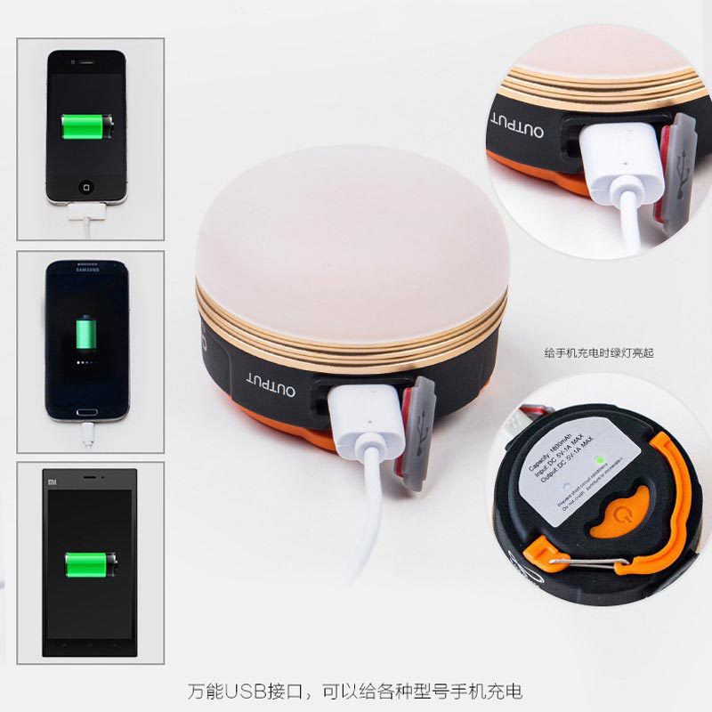 Đèn led cắm trại sạc USB là được đánh giá khá cao vì tính tiện lợi của nó. Nó vừa là thiết bị chiếu sáng cũng là sạc dự phòng cho điện thoại. Với cường độ sáng 300 lumen và thời gian sáng lên đến 8 giờ liên tục.Độ bền cao, nhỏ gọn, có thể treo hoặc bám trên các vật dụng bằng sắt nhờ đế có nam châm. Có thể sạc lại bằng đầu sạc android, thời gian sạc nhanh và trữ lượng pin lớn. Thích hợp làm đèn cắm trại, chiếu sáng trong nhà và các hoạt động ngoài trời