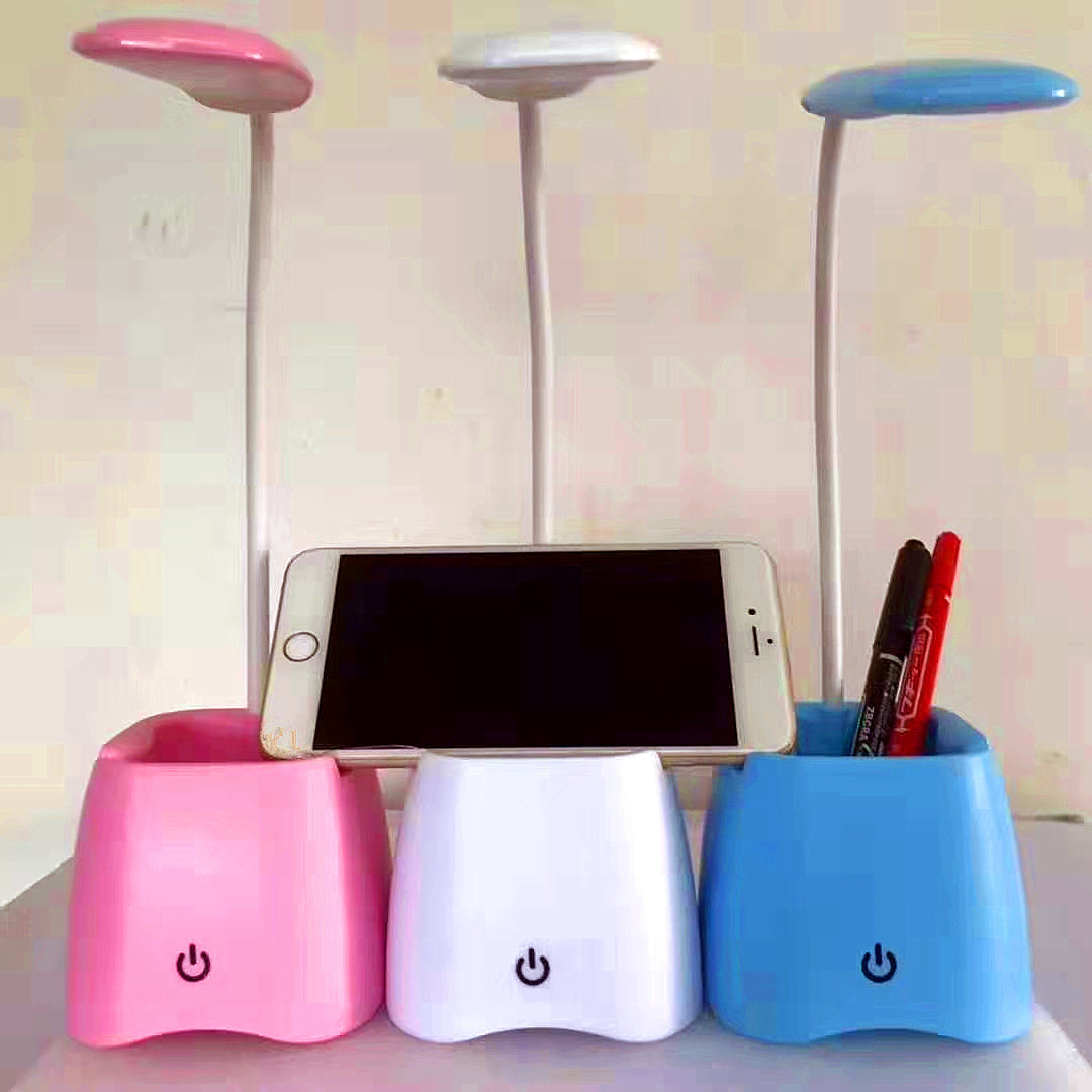 Đèn LED Cảm Ứng Để Bàn Sạc USB 3 Chế Độ Sáng Có Ngăn Đựng Bút Và Giá Đỡ Điện Thoại - Chính Hãng