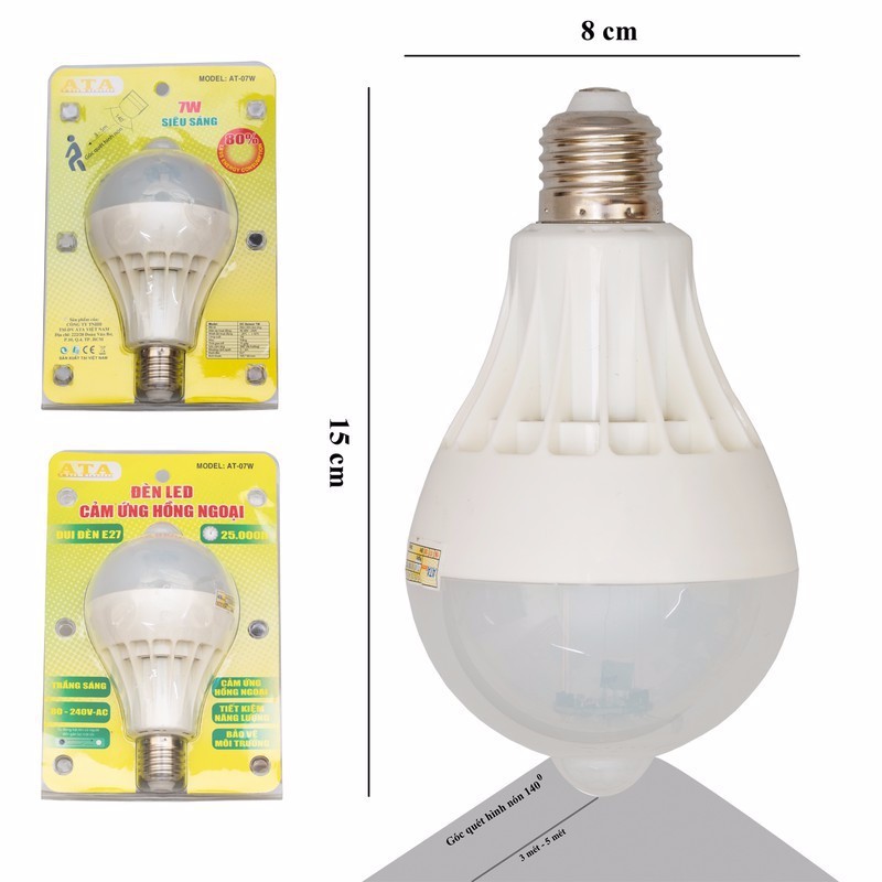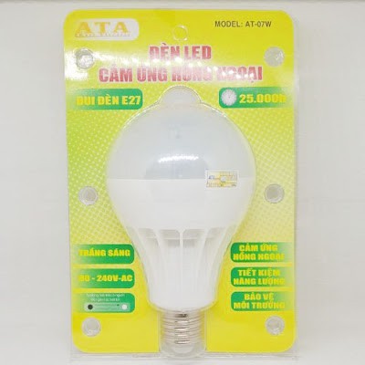 Bóng đèn Led cảm ứng hồng ngoại AT-07W- Bóng đèn Led cảm ứng hồng ngoại AT-07W là thiết bị cảm biến nhận diện sự chuyển động của con người. Tự động mở đèn khi có người di chuyển và thiếu ánh sáng ( độ sáng dưới 10 lux – ánh sáng trời lúc18:30 ) trong vùng cảm ứng.