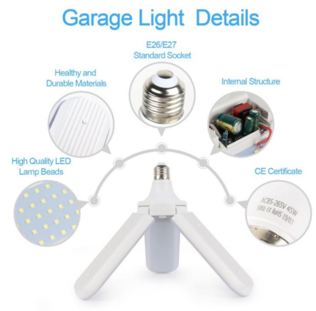 ĐÈN LED CÁNH QUẠT ĐA GÓC CHIỀU SIÊU SÁNG ĐÈN LED SIÊU SÁNG 45W HÌNH 3 CÁNH QUẠT - ĐUI E27