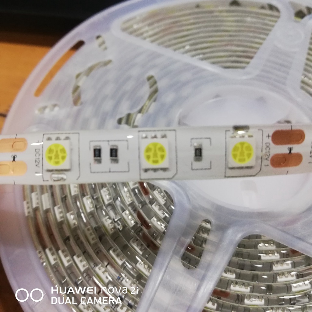 Đèn led chống nước cuộn 5m 5050.- Led cuộn 5 mét chất lượng tốt, 60 led/1m, mặt dưới có keo dinh 3M để dễ dàng thi công gắn lên công trình
