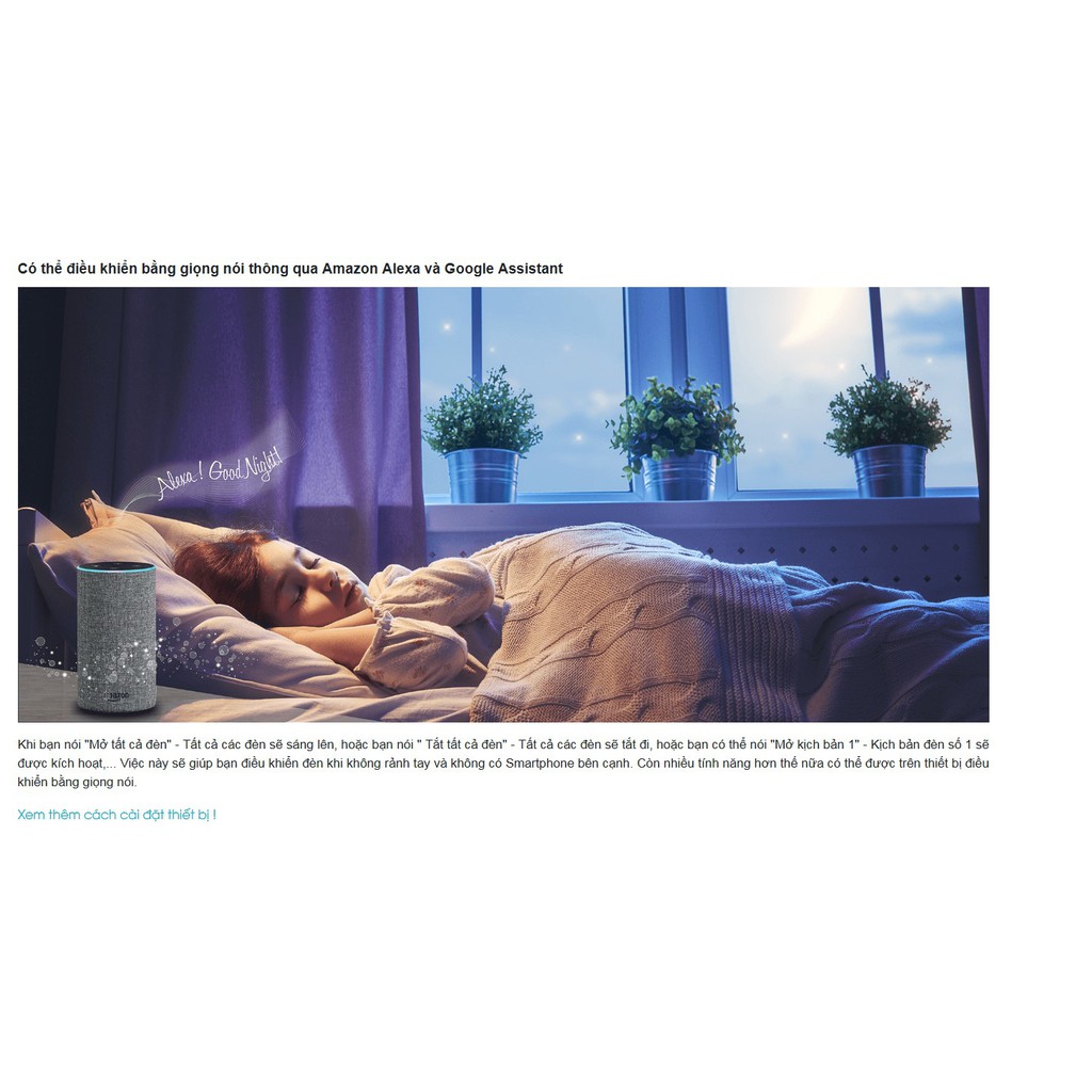 Có thể điều khiển bằng giọng nói thông qua Amazon Alexa và Google Assistant
