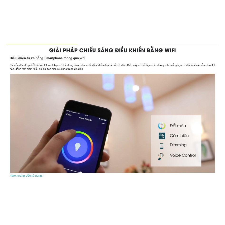 -Chỉ cần đèn được kết nối với Internet, bạn có thể dùng Smartphone để điều khiển đèn từ bất cứ đâu. Điều này có thể hạn chế những tình huống bạn ra khỏi nhà mà vẫn chưa tắt đèn, đồng thời giảm thiểu chi phí tiền điện sử dụng trong gia đình
