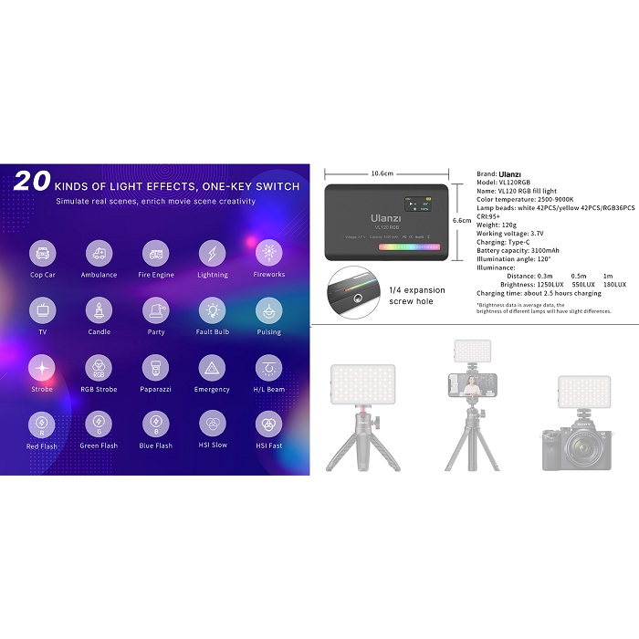 Cameras & Flycam > Phụ kiện máy ảnh > Thiết bị ánh sáng và phòng chụp || Đèn Led đổi màu VIJIM VL120 RGBCòn hàng