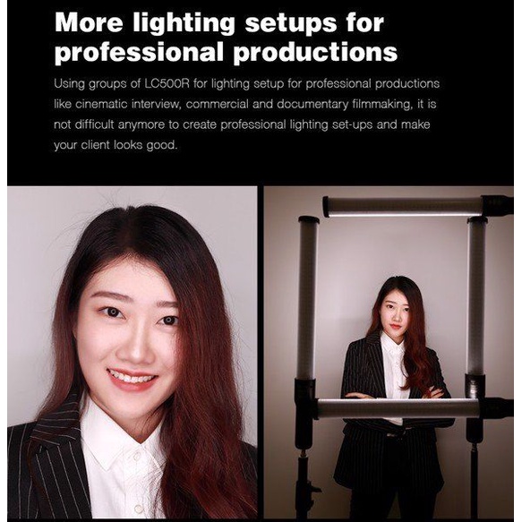 LC500R cung cấp 360 lựa chọn về màu sắc giúp cho hình ảnh thêm các sắc độ kịch tính hơn. Bên cạnh đó, chế độ ánh sáng FX với 14 loại được tích hợp vào đèn giúp mang lại các hiệu ứng phong phú để sáng tạo màu và chất điện ảnh cho nhiếp ảnh, vlog..