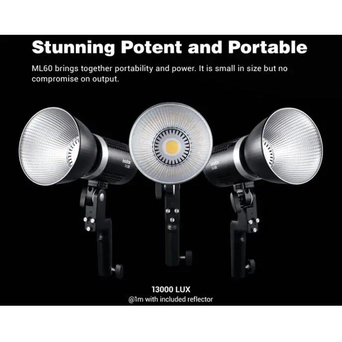 Đèn Led Godox ML60 là dòng sản phẩm mới nhỏ gọn với nhiều tính năng nổi bật. Với khả năng cân bằng nguồn sáng 60W cực kỳ thuận tiện, thiết bị cho phép sử dụng linh hoạt trong nhiều tình huống khác nhau. Ngoài ra, Godox ML60 cũng giúp đạt được ánh sáng chất lượng trong các công việc đòi hỏi tính sáng tạo và sự chuyên nghiệp cao. Godox ML60 là sự kết hợp hoàn hảo giữa tính di động và khả năng chiếu sáng hoàn hảo, mặc dù có kích thước nhỏ nhưng không hề ảnh hướng đến hiệu suất đèn khi sử dụng.THÔNG SỐ KỸ THUẬT: