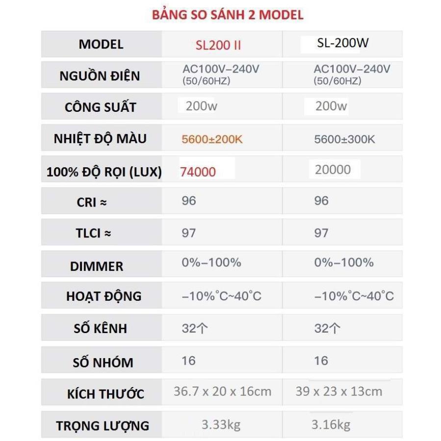 (QUÝ KHÁCH LƯU Ý: Sản phẩm đèn LED SL200ii được sản xuất từ T3/2021 trở lại đây sẽ không bao gồm điều khiển từ xa)