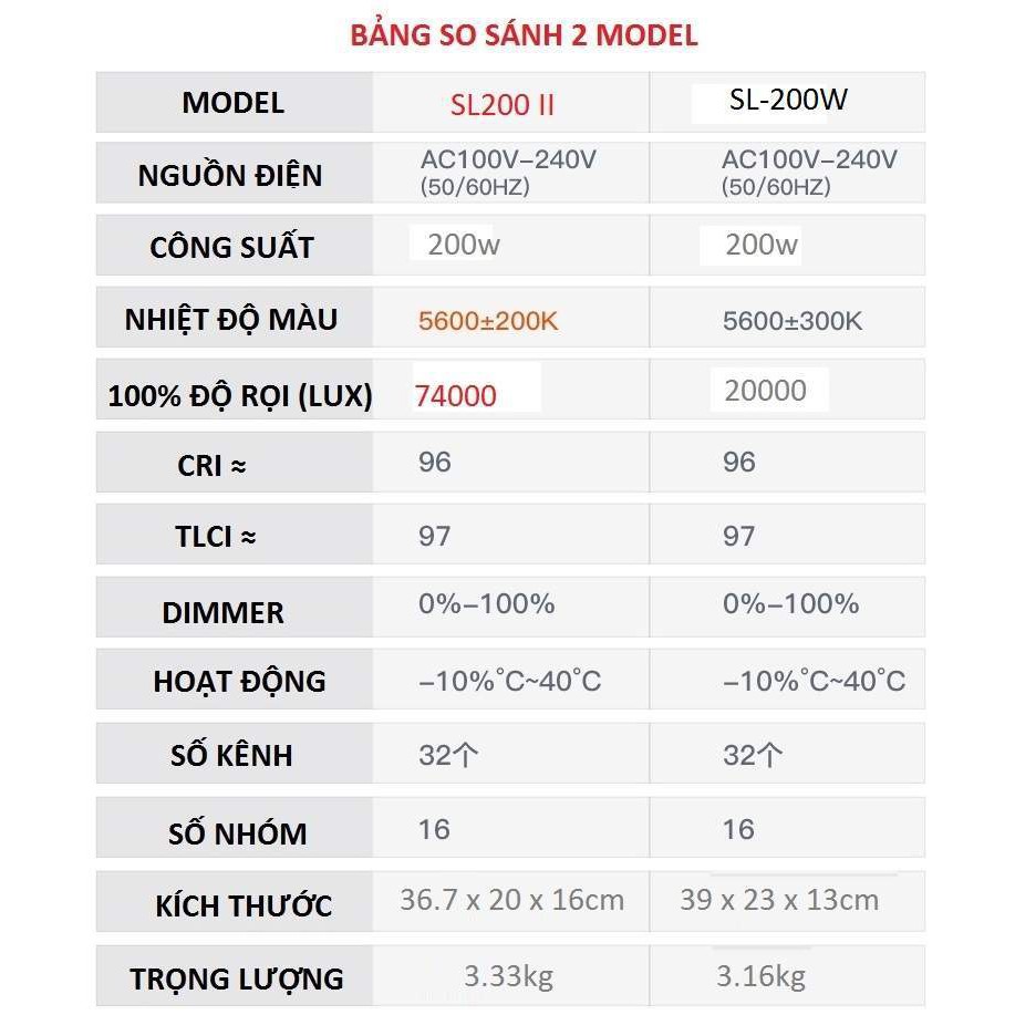 (QUÝ KHÁCH LƯU Ý: Sản phẩm đèn LED SL200ii được sản xuất từ T3/2021 trở lại đây sẽ không bao gồm điều khiển từ xa)