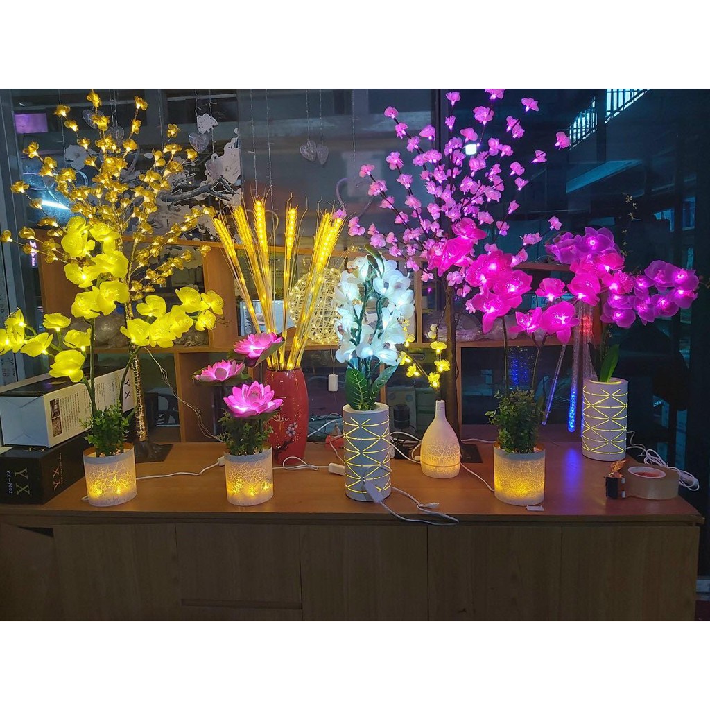 Đèn LED Hoa Mai, Hoa Đào Trang Trí Ngày Tết. Bình Cổ Lọ