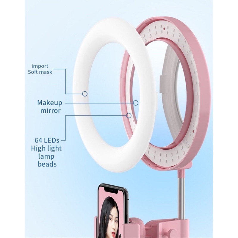 ĐÈN LED LIVESTREAM GẤP GỌN 3IN1 KÈM GƯƠNG TRANG ĐIỂM VÀ GIÁ ĐỠ ĐIỆN THOẠI ĐỂ BÀN
