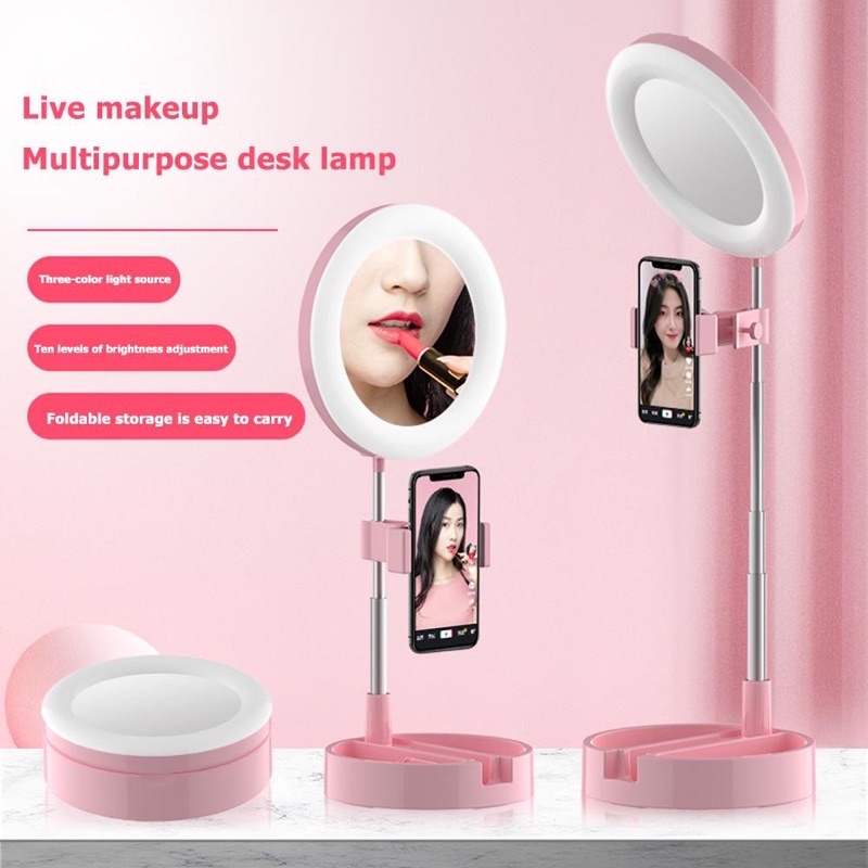 Nhà cửa & Đời sống > Trang trí nhà cửa > Gương || ĐÈN LED LIVESTREAM GẤP GỌN 3IN1 KÈM GƯƠNG TRANG ĐIỂM VÀ GIÁ ĐỠ ĐIỆN THOẠI ĐỂ BÀNCòn hàng