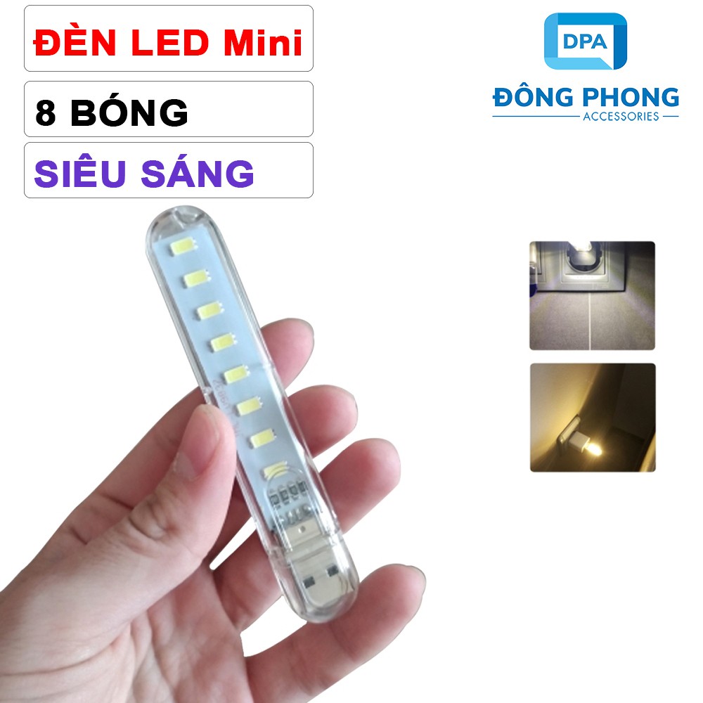 Đèn Led Mini USB 8 Bóng Siêu SángVới chiếc đèn này thì bạn có thể sử dụng với mọi cổng USB 5V như bộ sạc điện thoại, cổng USB trên ô tô, cổng USB máy tính, pin sạc dự phòng,...vô cùng thuận tiện cho người dùng.