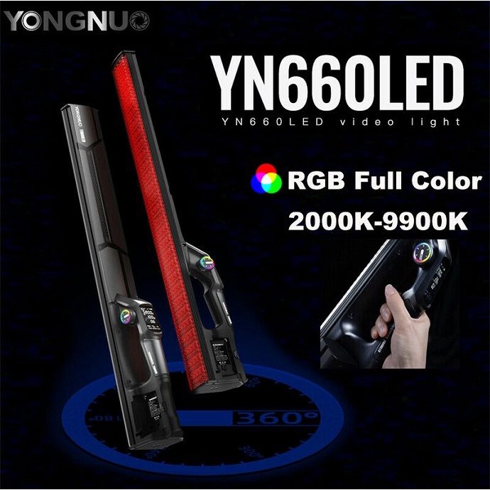 Đèn LED quay phim Yongnuo YN660LED RGB là dòng đèn LED RGB cầm tay linh hoạt với công suất lên đến 45w, nhiệt độ màu điều chỉnh từ 2000 – 9900K. Đèn YN660LED di động cho phép bạn chiếu sáng ảnh và video của mình theo cách sáng tạo, lý tưởng cho vlog, TikTok, YouTube và hơn thế nữa. Đèn LED có 31 hiệu ứng ánh sáng tích hợp và có thể được điều khiển bằng ứng dụng trên điện thoại thông minh. YN660LED được cấp nguồn bằng pin dòng NP-F hoặc nguồn điện một chiều (chưa bao gồm), sản phẩm YN660LED chính hãng Yongnuo được bán tại theitbiquayphim.com với giá tốt nhất.THÔNG SỐ KỸ THUẬT YONGNUO YN660LED RGB: