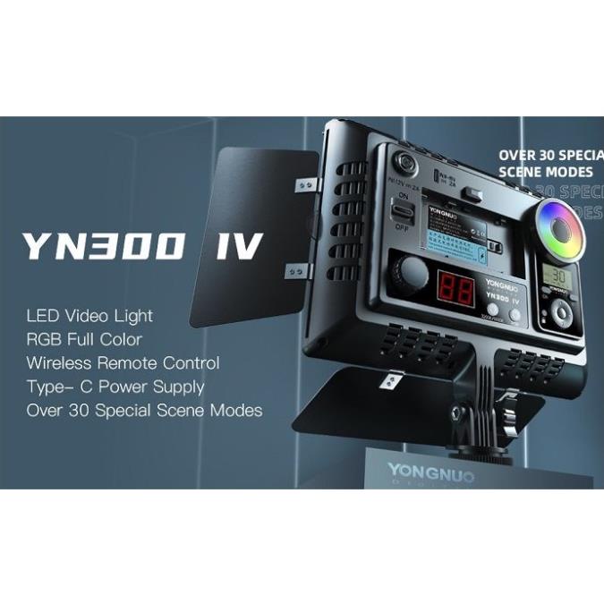 Đèn LED quay phim Yongnuo YN300 IV là dòng sản phẩm mới nhất của hãng sản xuất. Đèn được trang bị 316 đèn LED với tuổi thọ lên đến 50.000 giờ, bao gồm 158 bóng led nhiệt độ màu là 3200K và 158 bóng led nhiệt độ 5600K, 60 bóng led RGB SMD. Do đó nó có thể điều chỉnh dài nhiệt độ màu từ 3200K đến 5600K một các dễ dàng, YN300 IV RGB có thể được điều khiển không dây bằng điều khiển từ xa đi kèm.THÔNG SỐ KỸ THUẬT: