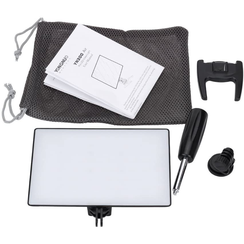 Đèn LED quay phim Yongnuo YN300 AIR là dòng đèn siêu mỏng đầu tiên của Yongnuo so với YN300 II hoặc YN300 lll, YN-300Air mỏng hơn đến 40%. YN-300 AIR trọng lượng nhẹ 360g và độ dày chỉ 22mm với nhiệt độ màu có thể điều chỉnh từ 3200K – 5600K. Đèn có đế gắn tiện dụng như tay cầm, đầu gắn vào hotshoe máy ảnh máy quay, giá đỡ chân vịt.