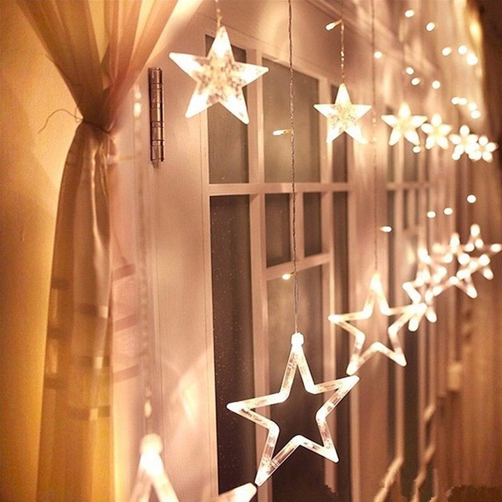 - Đèn led ngôi sao còn có dạng rèm nên chỉ cần mắc lên như rèm tiết kiệm được thời gian mà lại lạ và độc