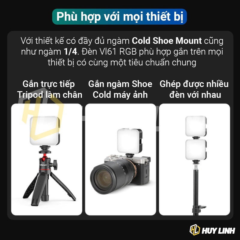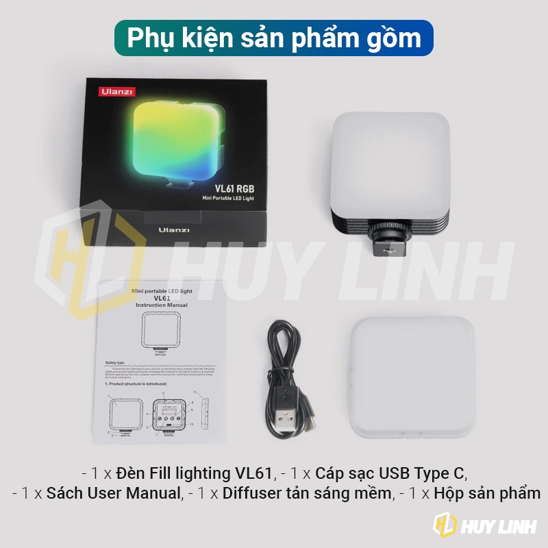 Cameras & Flycam > Phụ kiện máy ảnh > Thiết bị ánh sáng và phòng chụp || Đèn led RGB Studio Ulanzi VL61 8W Mini Video - Khuếch Tán 3W nhiệt độ 2500K-9000KCòn hàng