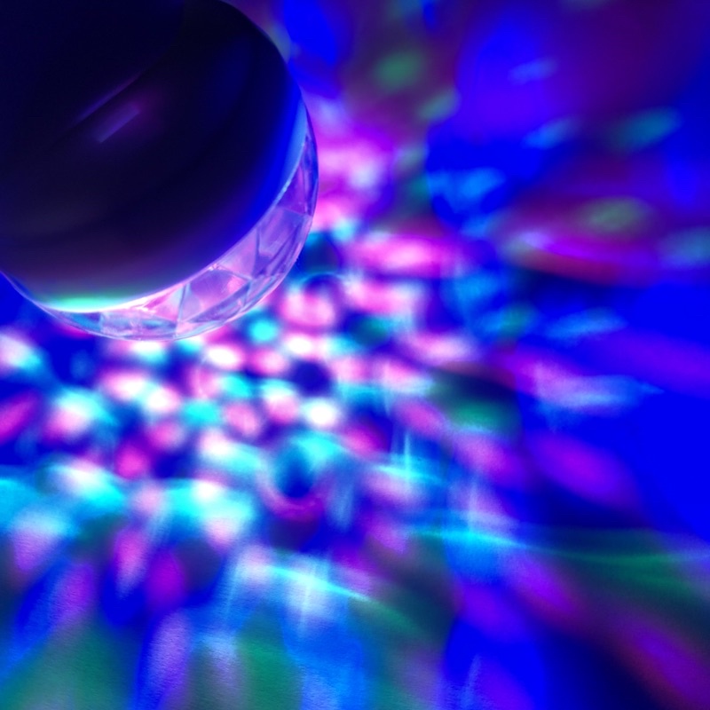Tính năng: đèn sẽ đổi ánh sáng tự động, thay đổi ánh sáng theo điệu nhạc, phù hợp sử dụng khi vui chơi, ca hát tụ tập, tạo không khí party vui vẻ.