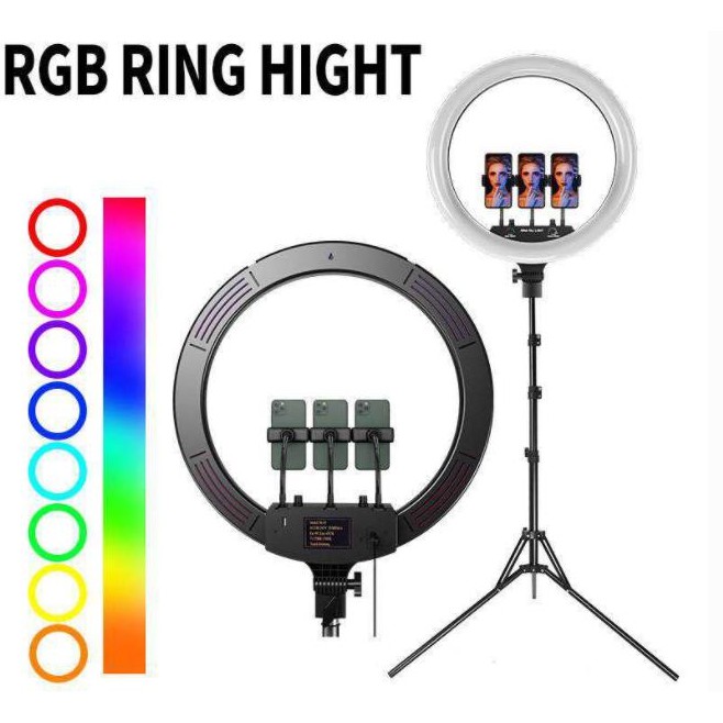 Đèn led Ring tròn đổi màu RGB MJ18 là dòng đèn thiết kế mới 2020 được nhiều khách hàng ưa chuộng sử dụng, MJ18 (M-45) được thiết kế từ những hạt led siêu sáng, thích hợp chụp ảnh chân dung, quay vlog beauty, livestream, nhiệt độ màu tùy chỉnh 3000K – 6000K và RGB rất tiện lợi cho mọi cảnh quay phim chụp ảnh.THÔNG SỐ KỸ THUẬT