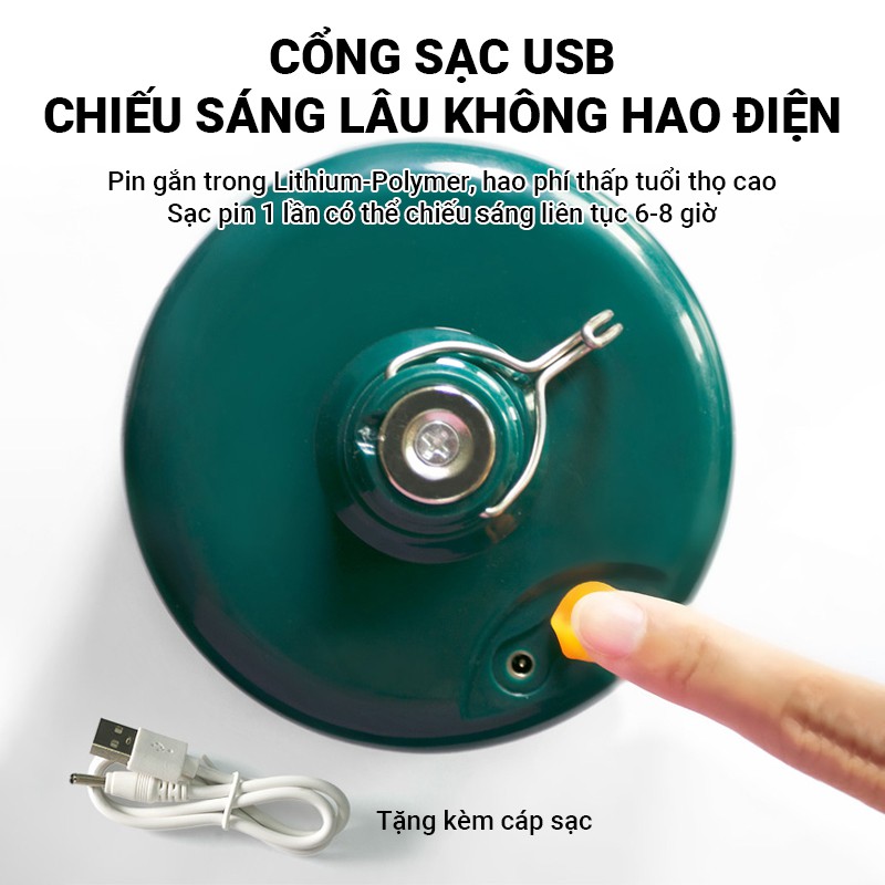 - Móc treo tiện lợi có thể treo bất kỳ đâu, chiếu sáng mọi nơi