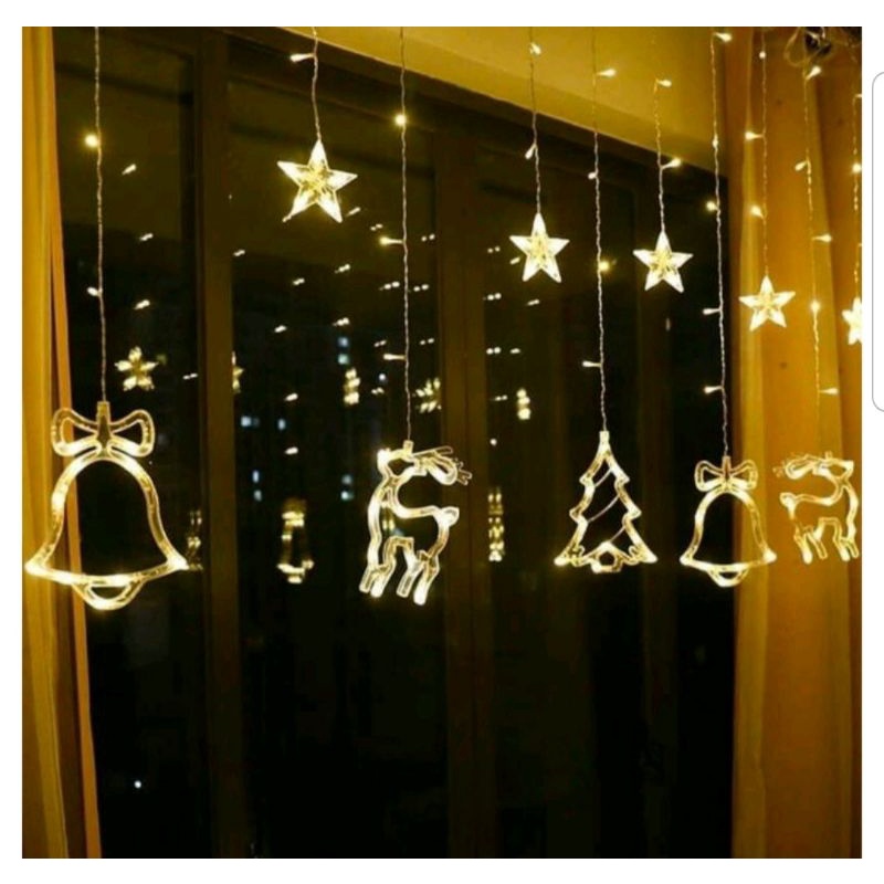 Nhà cửa & Đời sống > Trang trí nhà cửa > Rèm cửa, màn che || Đèn Led thả rèm hình chuông cây thông tuần lộc chống thấm ngoài trờiCòn hàng