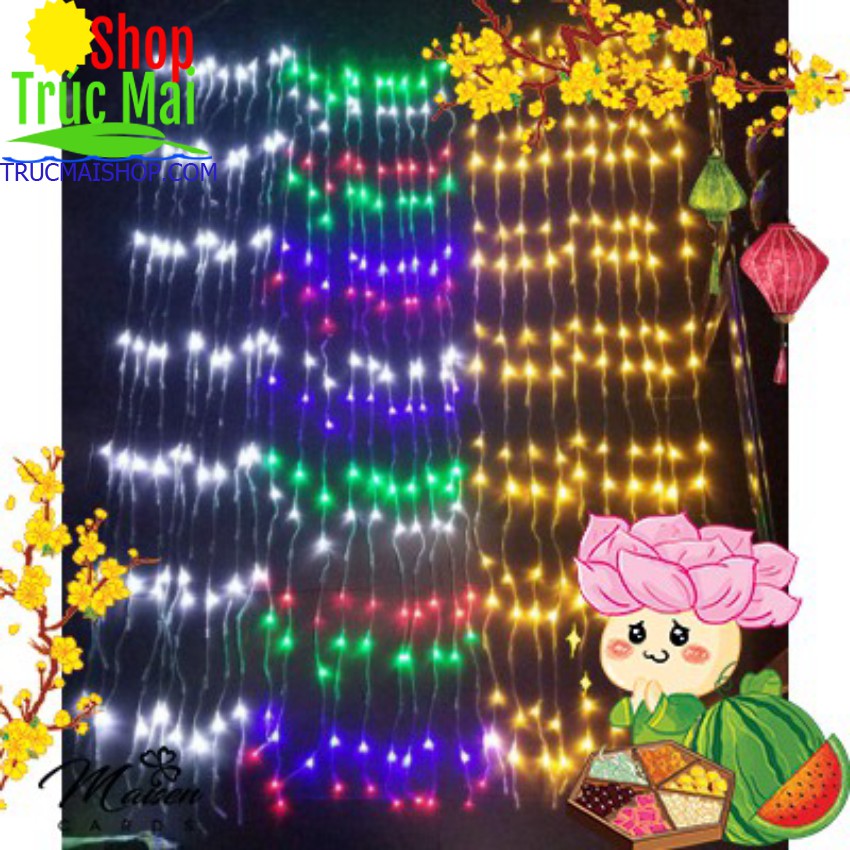 Đèn Led Thả Rèm Mưa Rơi 3mx3m- Đèn Nháy Thả Mành, Trang trí sinh nhật, Rèm cửa
