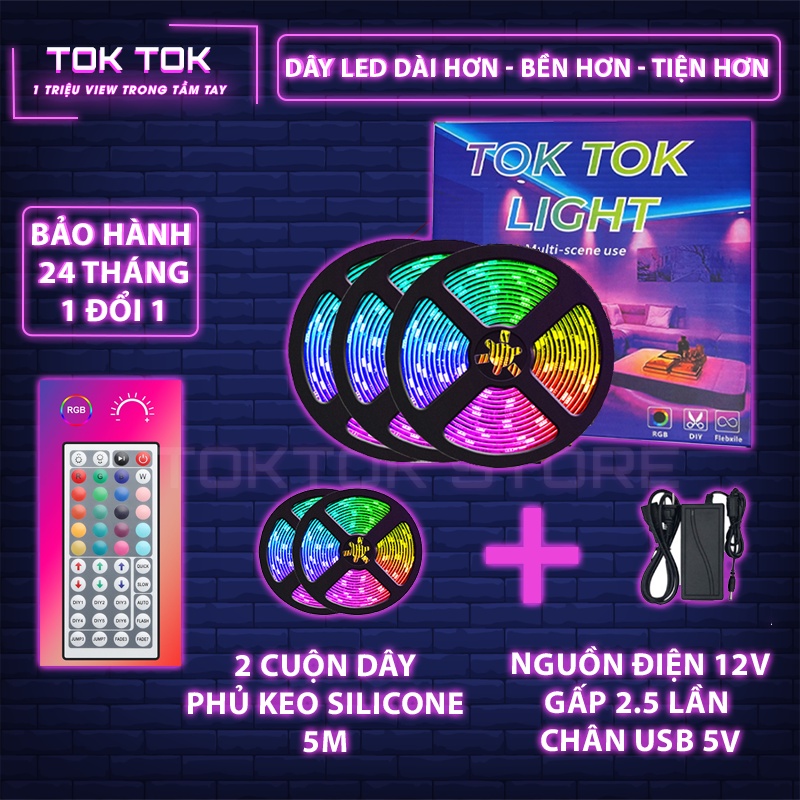 - 2X Đèn Led có chiều dài 5 mét (Tất cả đèn led của TOKTOK đều có lớp keo phủ trong suốt chống nước bất kể trong nhà hay ngoài trời)