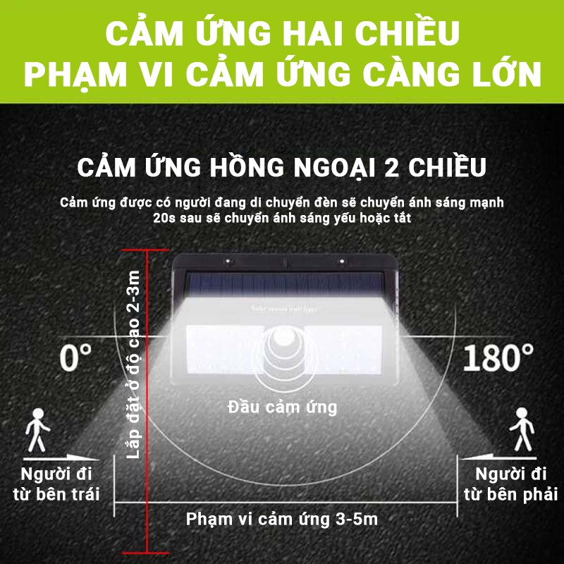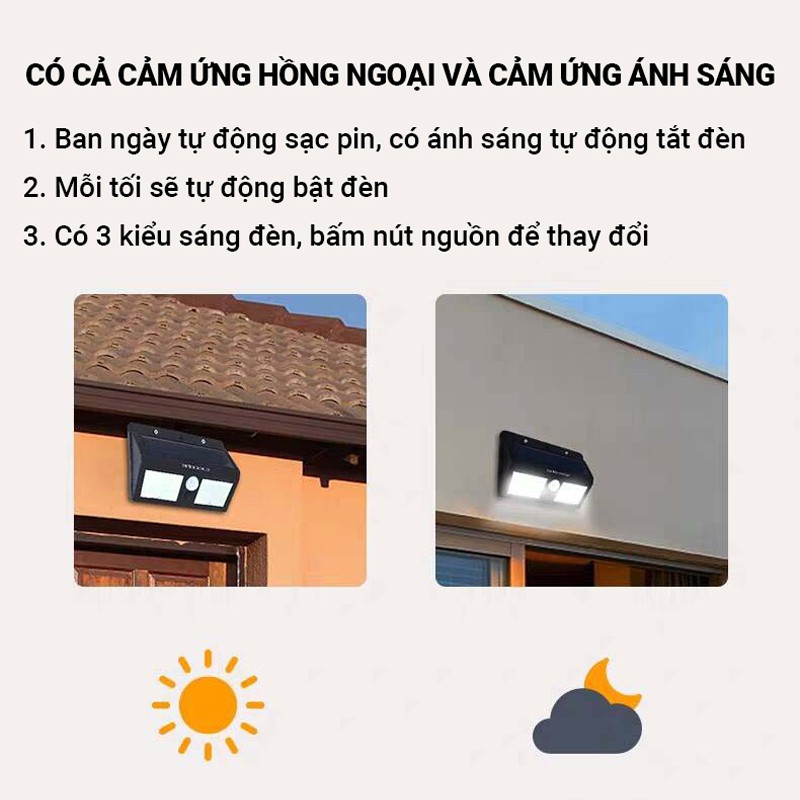 Đèn LED treo tường cảm ứng thông minh 60 bóng LED, sử dụng pin năng lượng mặt trời, không tốn tiền điện, dễ dàng lắp đặt