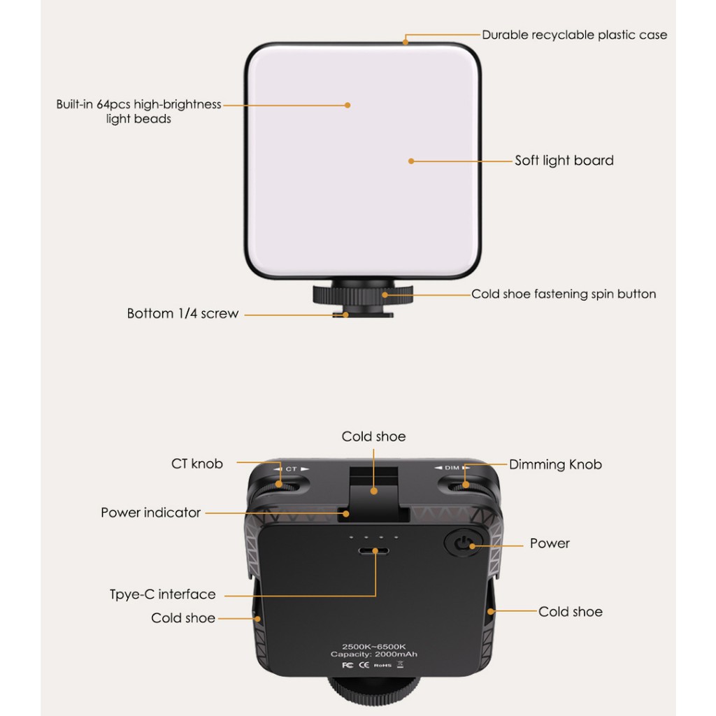 Giới thiệu Đèn led trợ sáng dùng livestream, quay vlog, chụp ảnh sản phẩm pin 2000mAh, độ sáng 2500 ~ 6400K