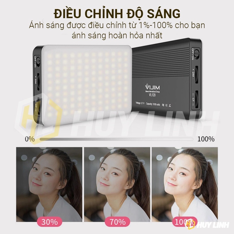 Giới thiệu Đèn LED trợ sáng quay phim chụp hình VIJIM VL120 Colour - 120 bóng đèn led pin sạc 3100Mah
