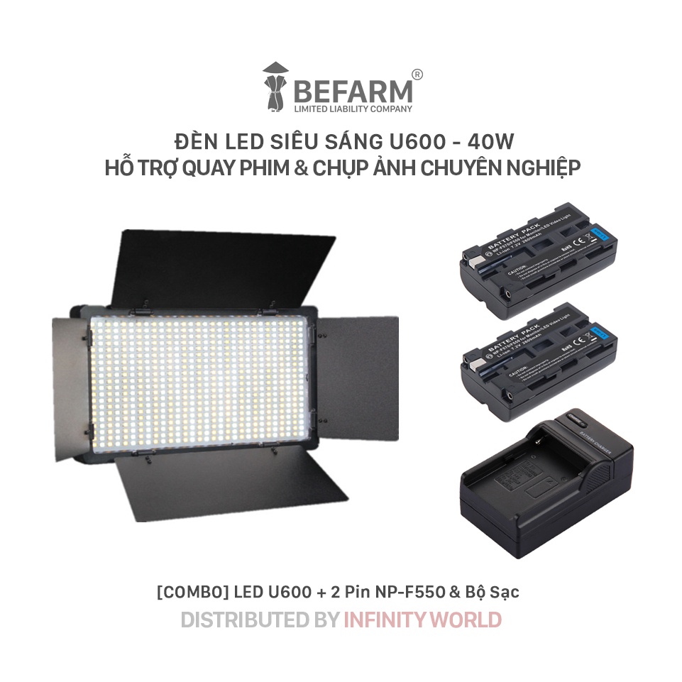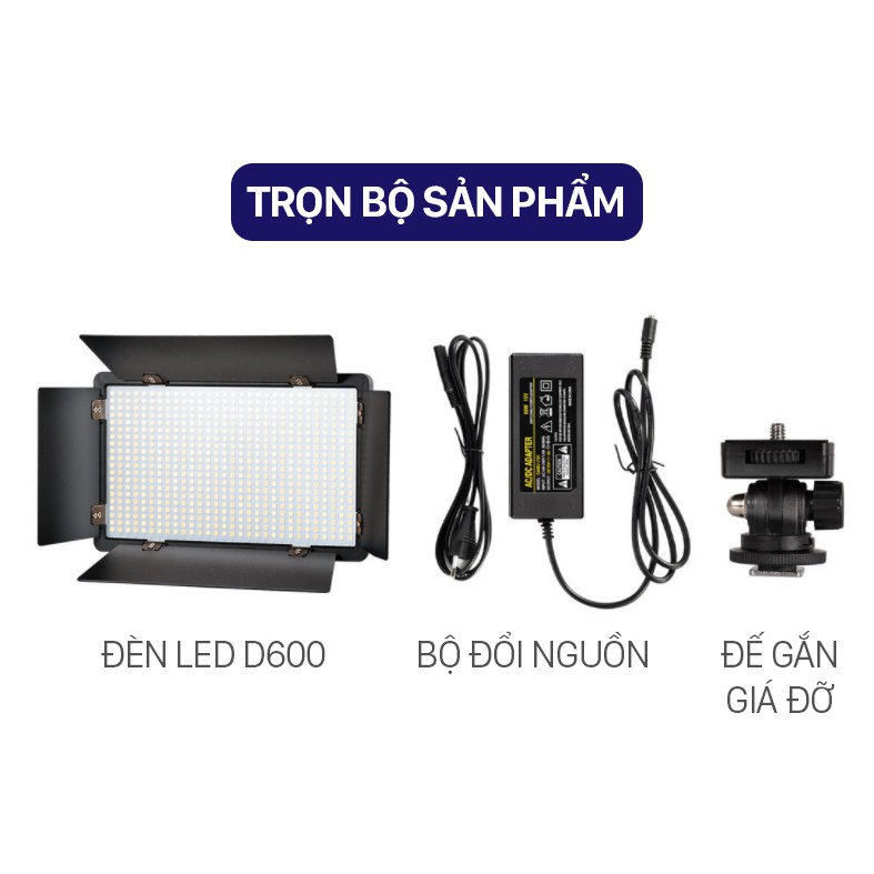 Đèn LED U600 (600 LED) 40W hỗ trợ chiếu sáng cho quay phim, chụp ảnh chuyên nghiệp (kèm phụ kiện chuyên dụng cao cấp)