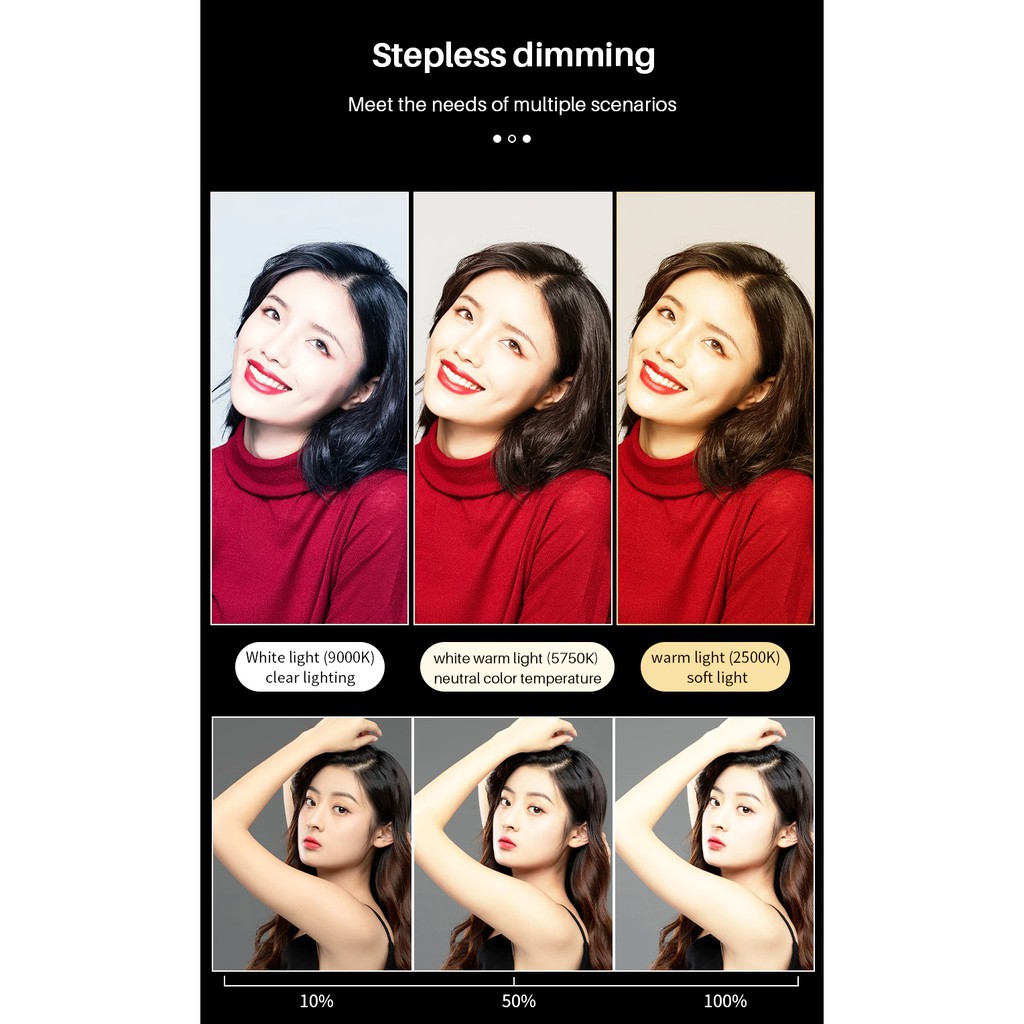Độ sáng cao & hạt LED CRI cao: Sử dụng nhiệt độ hai màu 36 chiếc + hạt LED RGB 30 chiếc, độ sáng cao 500LUX ở 0,5 mét, CRI cao hơn 95+, có thể thực sự khôi phục màu sắc của vật thể và giúp bạn chụp ảnh sống động hơn.