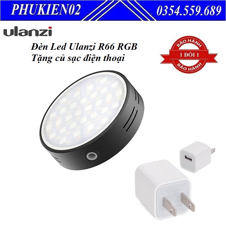 Đèn Led Ulanzi R66 RGB Trợ Sáng Chụp Ảnh, Quay Phim Cho Máy Ảnh, Điện Thoại Tặng kèm củ sạc điện thoại - Hàng chính hãng