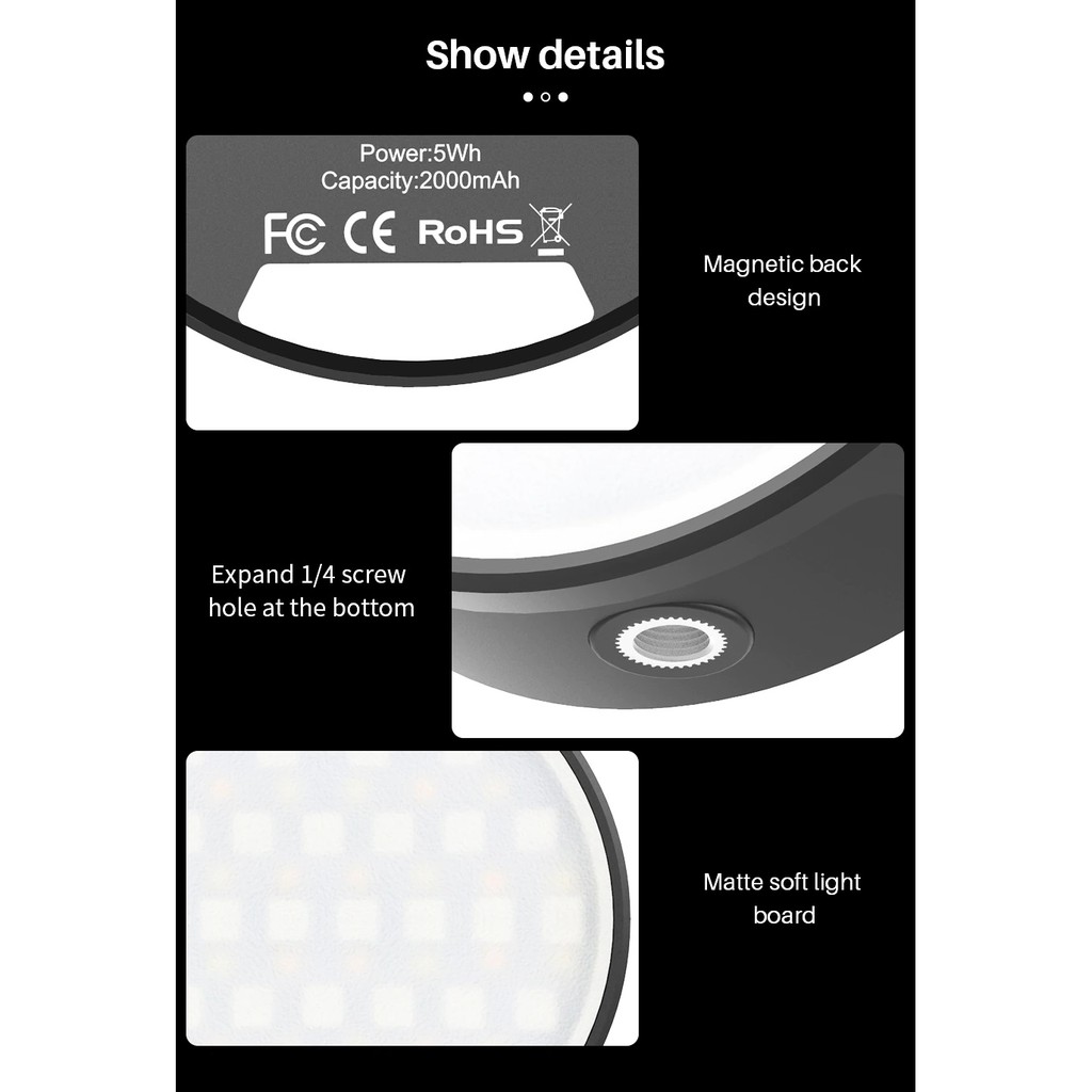 Các tính năng: Với bộ khuếch tán silicon để làm cho ánh sáng dịu hơn và bộ chuyển đổi giá treo giày clod cho phép bạn cài đặt đèn trực tiếp trên máy ảnh DSLR; thiết kế mặt sau hấp thụ từ tính mạnh để cài đặt ánh sáng linh hoạt hơn.