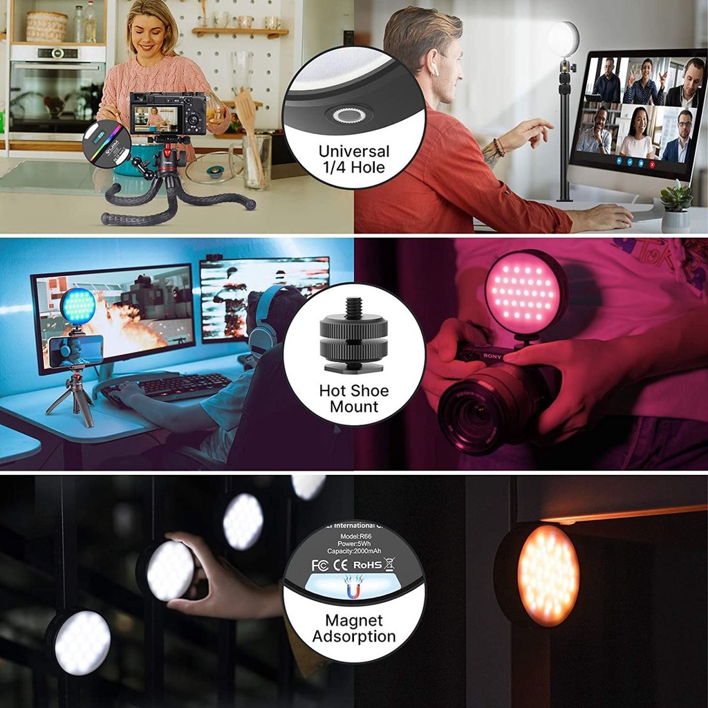 Đèn video LED RGB Mini Ulanzi R66 2500K-9000K có thể sạc lại 20 hiệu ứng ánh sáng CRI95 + Hấp phụ từ tính với bộ khuếch tán Silicon Bộ điều hợp gắn giày lạnh để chụp ảnh sản phẩm phát trực tiếp VlogChào mừng bạn đến với musdoing cho sản phẩm, bạn có thể liên hệ với chúng tôi để được giảm giá nhiều hơn.