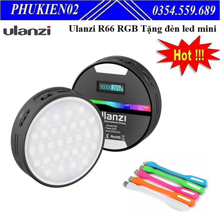 Đèn Led Ulanzi R66 RGB Trợ Sáng Chụp Ảnh, Quay Phim Cho Máy Ảnh, Điện Thoại Tặng kèm đèn led mini cắm cổng usb