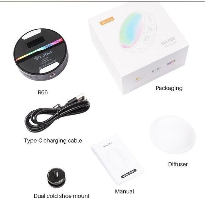 Đèn led Ulanzi VIJIM R66 RGB là dòng đèn phiên bản mới sử dụng độ hoàn màu cao 66 hạt đèn. CRI lớn hơn 95, gần với ánh sáng tự nhiên, Góc chiếu sáng: 120 °, Khoảng cách chiếu sáng: 0,5m, Độ sáng: 500LUX. Áp dụng cho Chụp ảnh tĩnh, chân dung , ánh sáng trực tiếp, ánh sáng chụp ảnh, vlog, v.v.THÔNG SỐ KỸ THUẬT ĐÈN VIJIM R66 RGB: