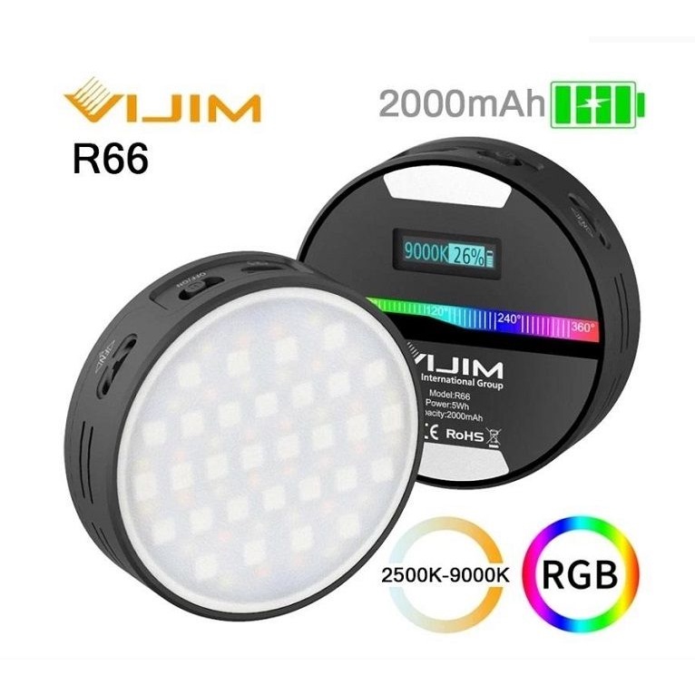 Đèn video VIJIM R66 RGB tích hợp màn hình LCD cho phép đọc chính xác, lựa chọn nhanh các màu 0-360 °, kiểm soát độ sáng 0-100%; có thể điều chỉnh nhiệt độ màu từ 2500K (ấm) đến 9000K (lạnh). Ánh sáng chụp ảnh tốt cho phép bạn làm việc hiệu quả hơn.