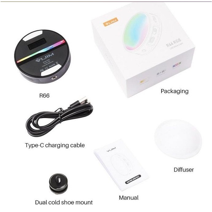 Đèn led Ulanzi VIJIM R66 RGB là dòng đèn phiên bản mới sử dụng độ hoàn màu cao 66 hạt đèn. CRI lớn hơn 95, gần với ánh sáng tự nhiên, Góc chiếu sáng: 120 °, Khoảng cách chiếu sáng: 0,5m, Độ sáng: 500LUX. Áp dụng cho Chụp ảnh tĩnh, chân dung , ánh sáng trực tiếp, ánh sáng chụp ảnh, vlog, v.v.THÔNG SỐ KỸ THUẬT ĐÈN VIJIM R66 RGB: