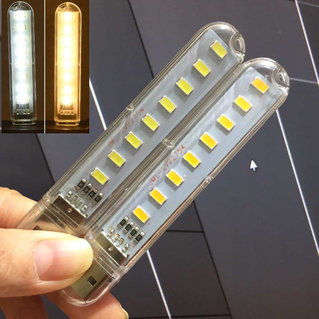Đèn LED mini loại 8 bóng:-Cổng giao tiếp: USB, có thể sử dụng vói pin dự phòng, cổng Laptop....và các nguồn USB 5V khác