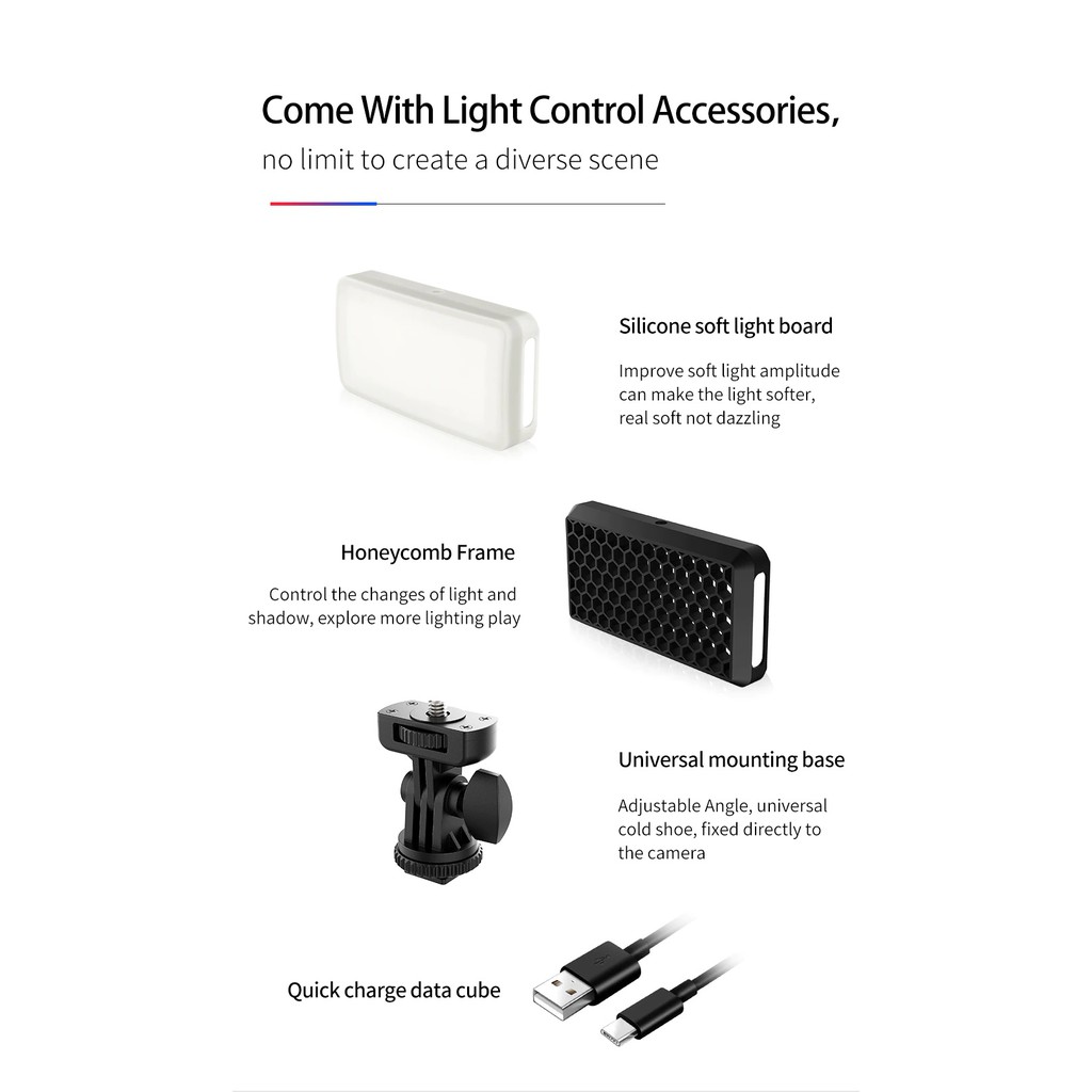 Đèn led video Ulanzi VIJIM VL196 RGB được thiết kế từ hợp kim nhôm CNC gọn nhẹ, kích thước tương đương một chiếc điện thoại smartphone, tiện dụng cho người dùng, đặc biệt là các khách hàng yêu thích sự gọn nhẹ và tinh tế. Đèn VIJIM VL196 RGB tích hợp pin lithium dung lượng lớn 3000mAh mà không lo không đủ năng lượng khi quay.Khi sử dụng Vlog vách ngăn dày nhẹ ánh sáng trực tiếp không chói và nguồn sáng dịu hơn.THÔNG SỐ KỸ THUẬT: