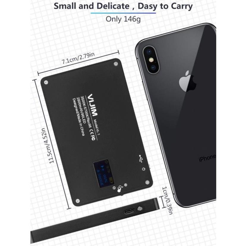 Đèn led video VIJIM VL-1 Ulanzi được thiết kế gọn nhẹ, kích thước tương đương một chiếc điện thoại smartphone, tiện dụng cho người dùng, đặc biệt là các khách hàng yêu thích sự gọn nhẹ và tinh tế. VIJIM VL-1 có khả năng tương thích và hỗ trợ ánh sáng hoàn hảo để bạn chụp ảnh và quay phim trên Canon, Nikon, Pentax, Panasonic , Sony và các máy ảnh DSLR khác. Đèn có Giao diện sạc TYPE-C Pin lithium tích hợp 2800 mAh, cùng hai giá treo ốc vít 1/4″ để gắn với máy ảnh, điện thoại hoặc chân máy.THÔNG SỐ KỸ THUẬT: