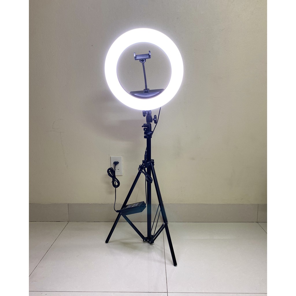 Bộ sản phẩm bao gồm: 1 đèn live stream 34cm + 1 chân đế + 1 kẹp điện thoại.
