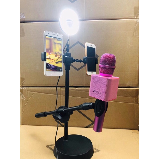 Bộ LiveStream Đa Năng 4 Trong 1 Có Đèn Led Trợ Sáng Cao Cấp HÀNG CHẤT LƯỢNG Đèn size 9cm Cao 50 phân Có 2 giá đỡ kẹp đt 2 bên 1 chân giá đỡ míc Sản phẩm được bảo hành 3 tháng Khách hàng nhập sỉ xin vui lòng liên hệGiá BAMBOO