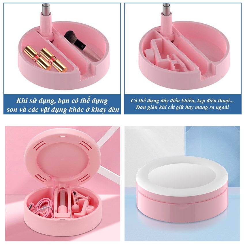 Điện Thoại & Phụ Kiện > Máy tính bảng || Đèn Livestream để bàn 16cm (6 inch) g3 tích hợp gương trang điểm màu hồng nhỏ gọnCòn hàng